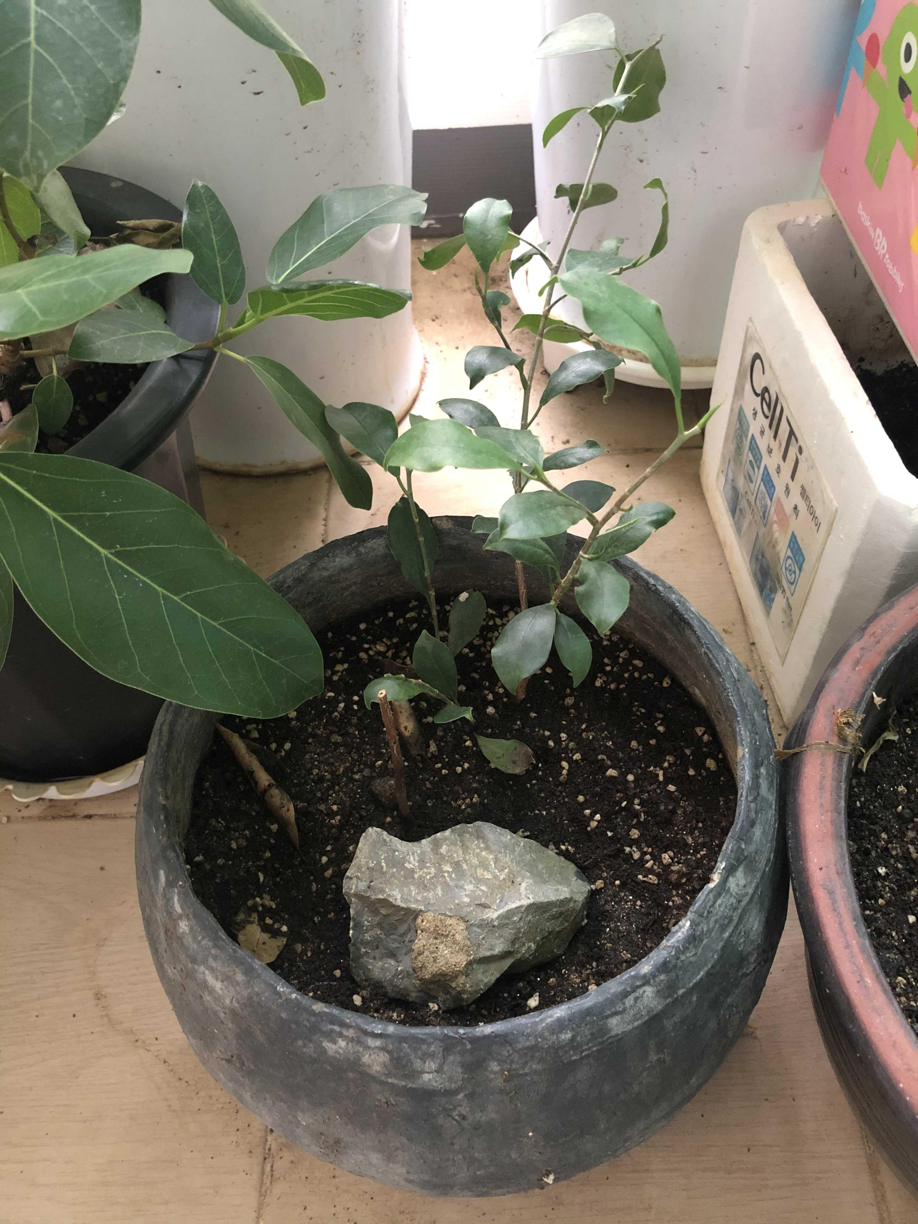 그래서 얼마전 분갈이해서 뿌리를 내려 살고있는 작은 인삼벤자민 옆에 묻어주기로 했다.