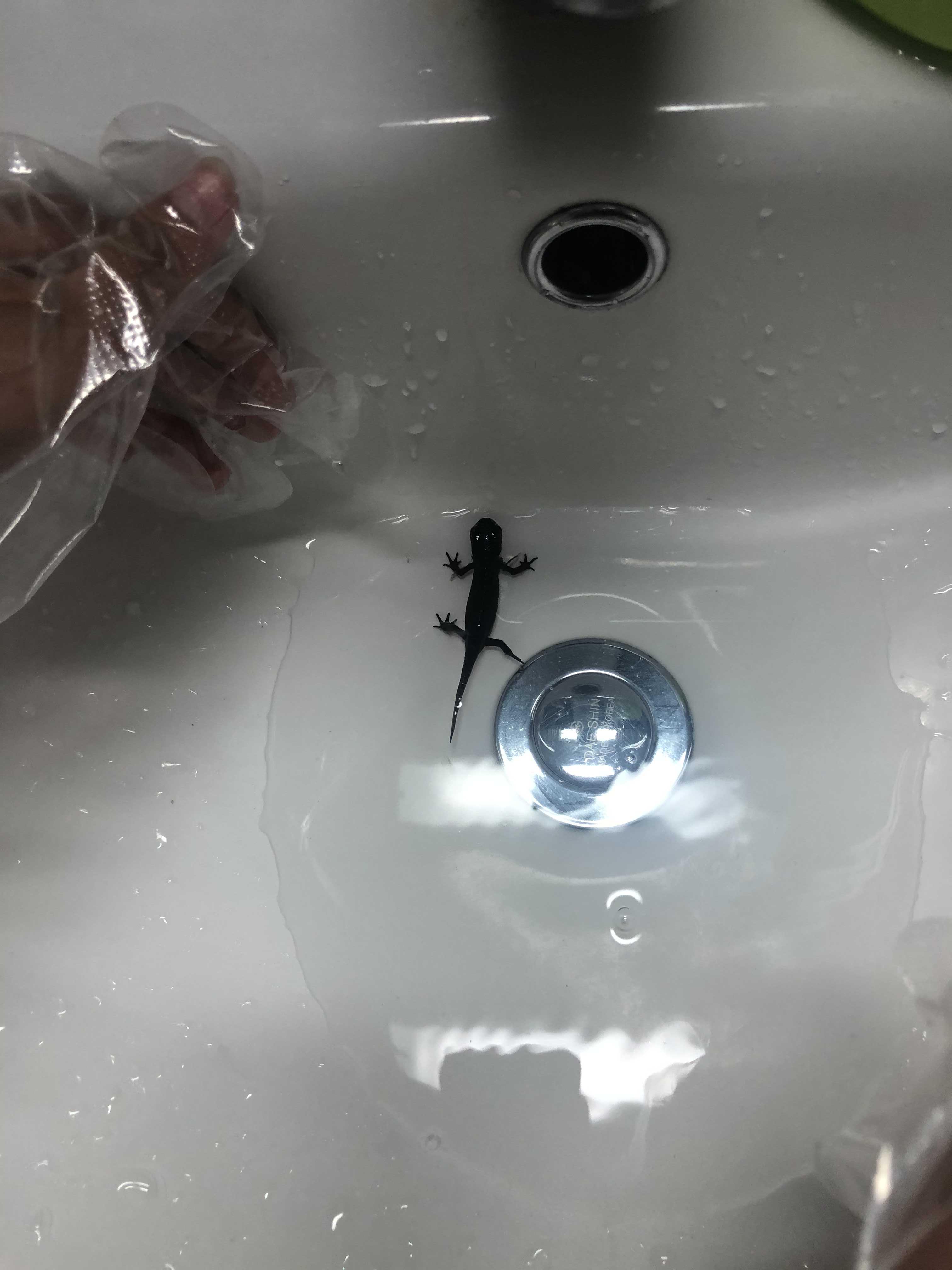 비어있던 용용이의 집 물 속에 용용이를 넣어주었다.